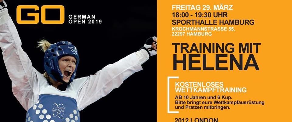Die ehem. Olympionikin Helena Stanek (geb. Fromm) und aktuelle Referentin für Medien und Marketing der Deutsche Taekwondo Union, gab am 29.03.2019, einen Tag vor dem Start des Weltranglisten-Turniers „German Open“. ein Wettkampftraining in der Alsterdorfer Sporthalle.